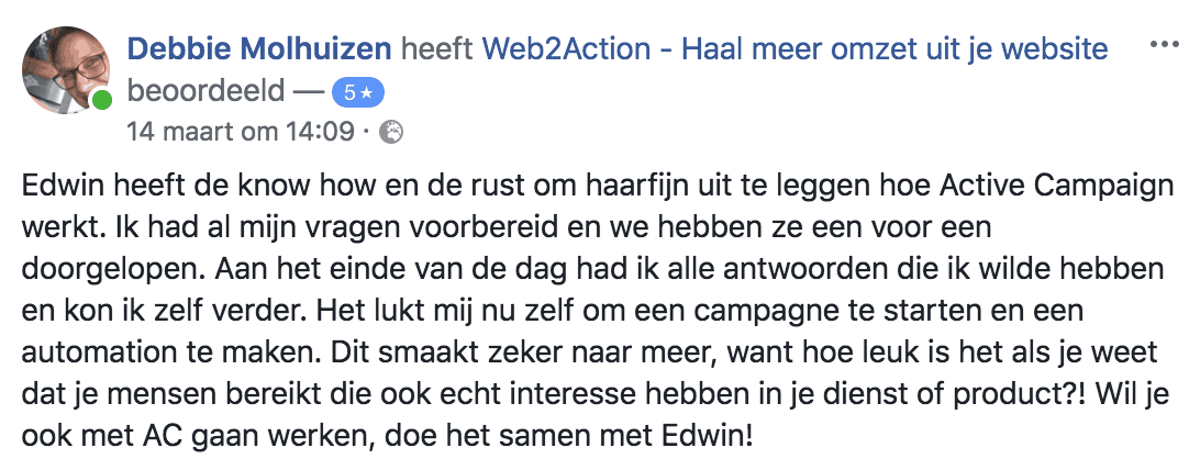 Funnel check is voor zowel beginnende als gevorderde gebruikers van ActiveCampaign. Tijdens de Funnel Check nemen we samen je account door, en kijken we waar kansen en verbeterpunten liggen.